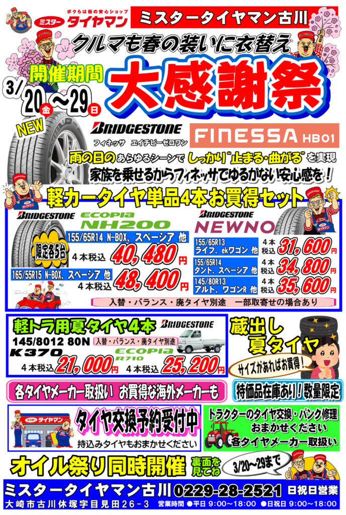 3/20(金)~3/29(日)の期間で、大感謝祭を実施します!