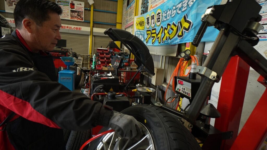 - タイヤのプロが真剣&丁寧な作業を実施します。